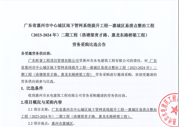 惠州市水電建筑工程有限公司成立于一九六四年四月,隸屬惠州市水務集團有限公司,是一家國有綜合性施工企業,主營水利水電工程、房屋建筑、市政工程等施工業務。公司擁有水利水電工程施工總承包一級、建筑工程施工總承包一級、市政公用工程施工總承包一級、公路工程施工總承包三級,公路路基、路面及建筑裝修裝飾專業承包二級,環保工程、機電安裝、河湖整治、輸變電工程專業承包三級等經營資質……